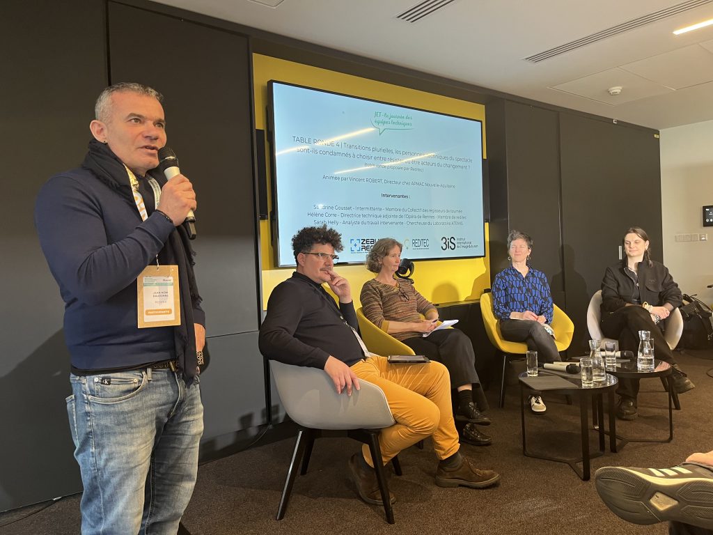 La table ronde, animée par Vincent Robert, a réuni des professionnels du spectacle vivant pour aborder la question de la transition écologique dans leurs métiers.